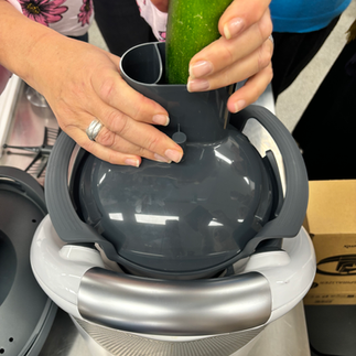 De spiralizer is een slimme aanvulling op de Thermomix® Cutter waarmee je groenten en aardappelen in spiralen kunt snijden. Je kunt kiezen uit twee soorten sneden: dikke spiralen (zoals tagliatelle) of dunne spiralen (zoals linguine of spaghetti). Het resultaat? Mooie, gelijkmatige spiralen die je gerechten niet alleen gezonder maken, maar ook ontzettend aantrekkelijk. Denk aan aardappeltornado’s, courgetti (spaghetti van courgette) of andere groentecreaties – de mogelijkheden zijn eindeloos!